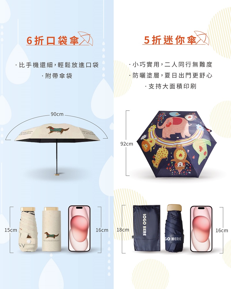 天氣時晴時雨,出行必備梗係要一把晴雨兩用雨傘!小編再為大家介紹兩款5及6折雨傘,小巧輕便,成為生活中的時尚單品,亦適合做既實用又具品牌價值的宣傳禮品 !💖